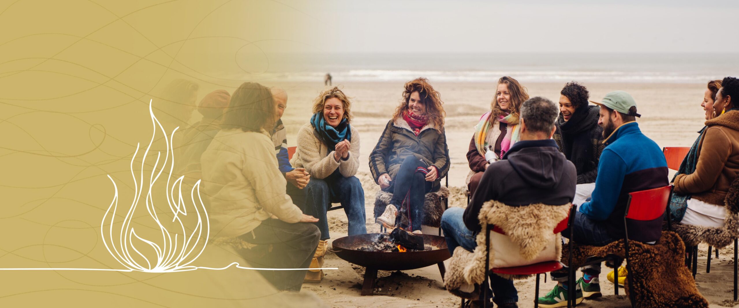 ‘Een kampvuur is een metafoor voor een sfeer waarin oprechte gesprekken worden gevoerd. We spreken met elkaar af om met hart en ziel aanwezig te zijn, onze zorgen en dromen te delen en onze mening bij te stellen als het gesprek daar aanleiding toe geeft. Dit kan zelfs online en is ook zeer geschikt voor grote groepen’